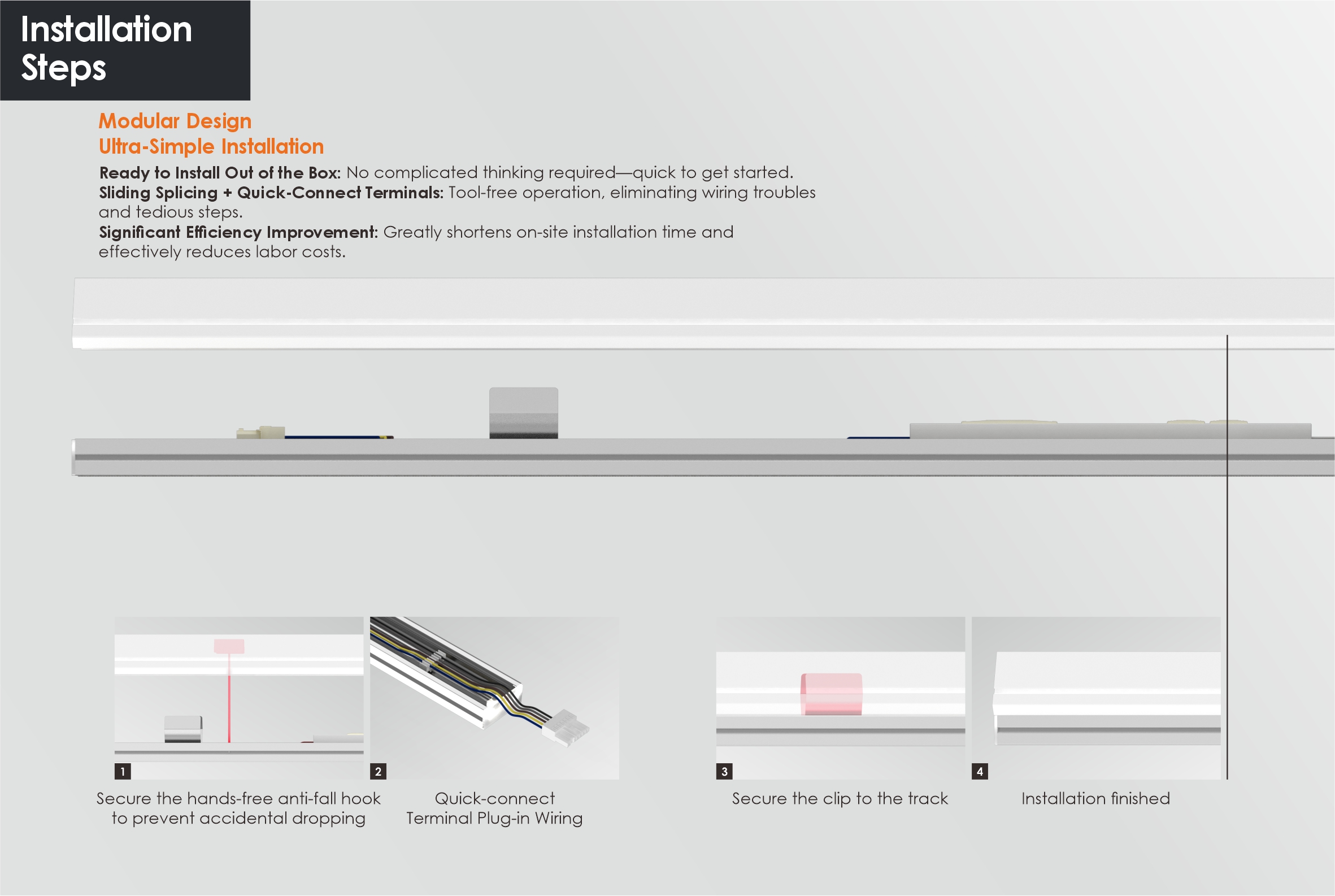 مع تصميم هيكلي محسن، مع أطراف سريعة قابلة للتوصيل وملحقات تثبيت خالية من الأدوات، يمكن تركيبه مباشرة من العلبة دون تفكير معقد. يلغي خطوات التوصيل السلسة المملة وتوصيلات إدارة الأسلاك المعقدة، مما يحسن بشكل كبير كفاءة التركيب في الموقع.