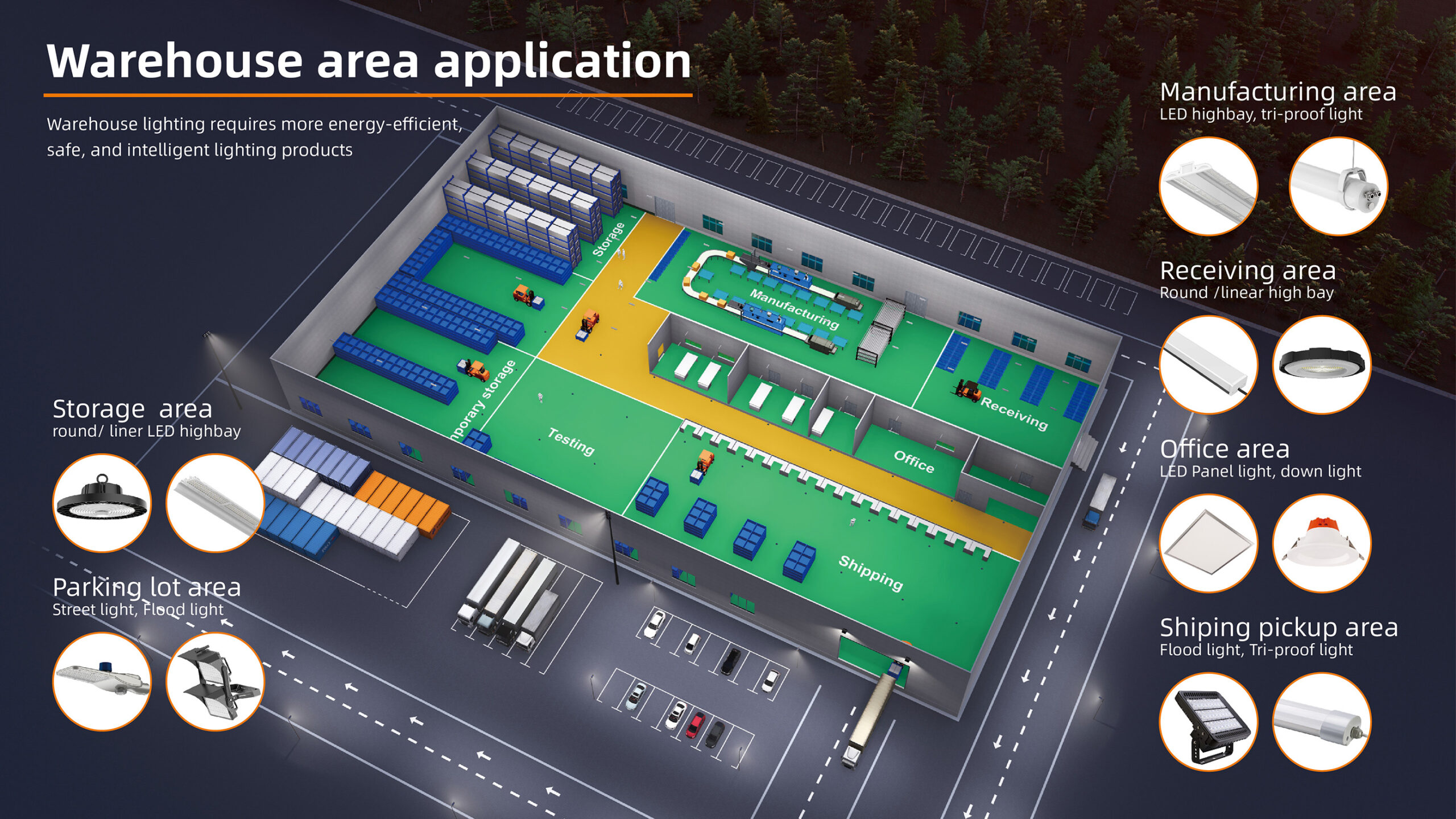 ولتلبية احتياجات إضاءة LED في المستودعات بشكل أفضل،ميسونطورت سلسلة من الفريداتأضواء LED عالية الحظيرةوأضواء LED ثلاثية المقاومة، تستخدم خصيصا في المستودعات للحفاظ على توزيع موحد للضوء وضمان سلامة العمليات.