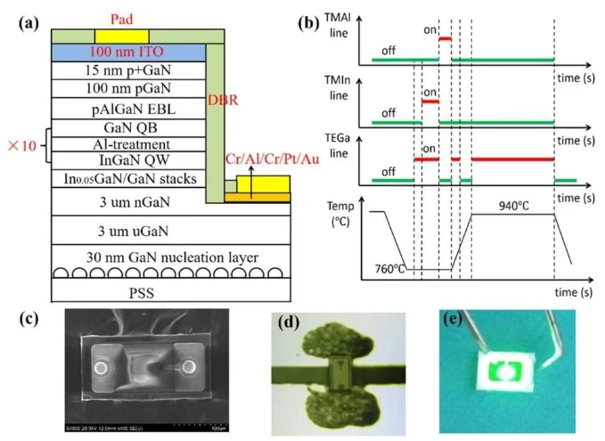 The team adopted a novel aluminum treatment process, in which trimethylaluminum (TMAl) was briefly introduced after growing each InGaN quantum well layer, forming an ultra-thin AlGaN protective layer on the quantum well surface. This approximately 0.5nm-thick film reduces defects during crystal growth, making the quantum well structure flatter and more stable, thereby enhancing overall crystal quality.