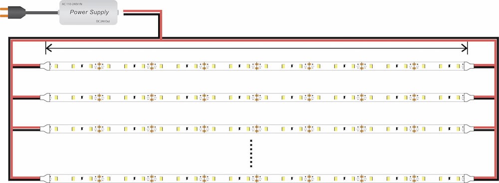 - LED strip systems should preferably use segmented power supply or dual-ended power supply.