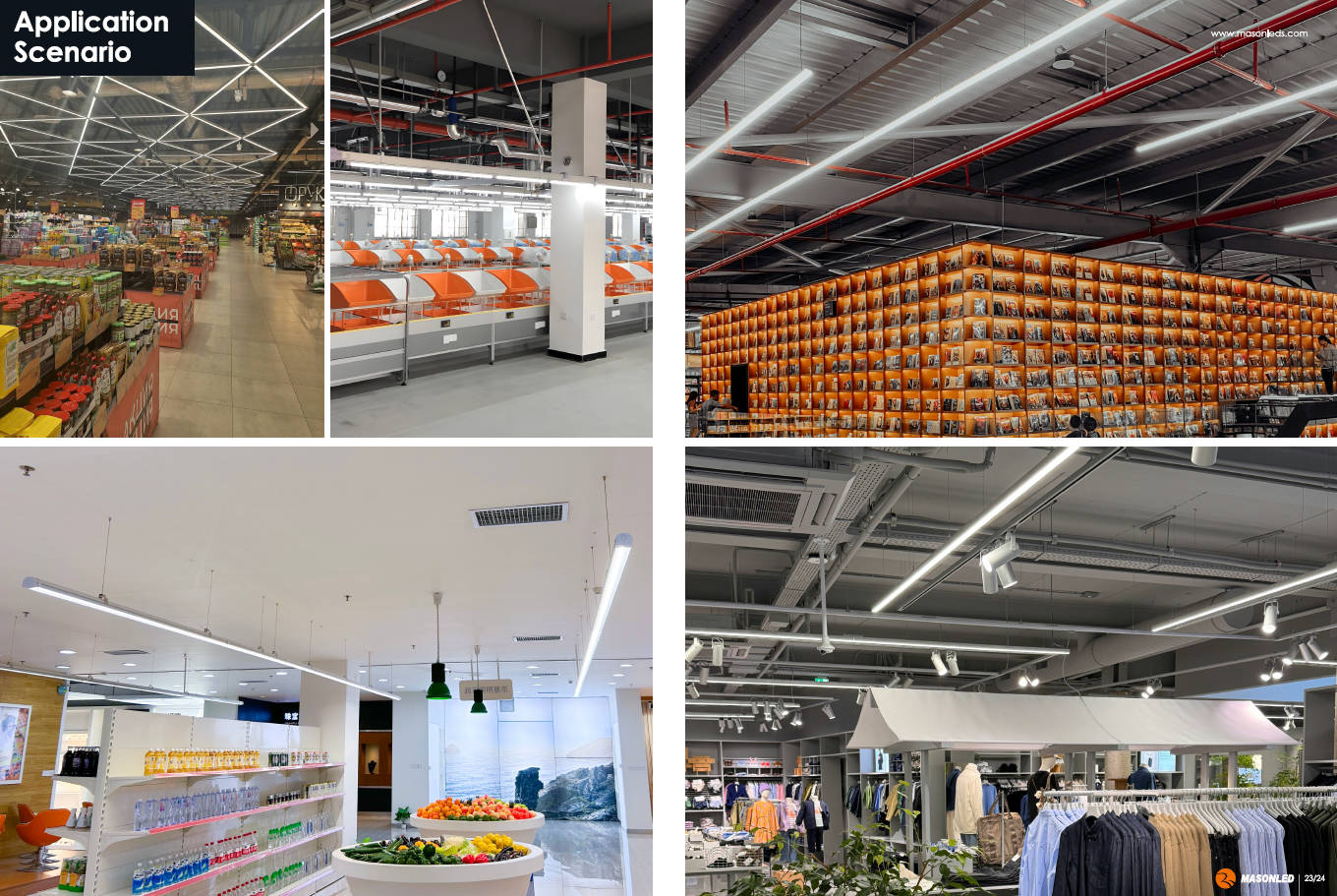 - Supermarkets:4000K with asymmetric lenses for perfect shelf vertical illumination.