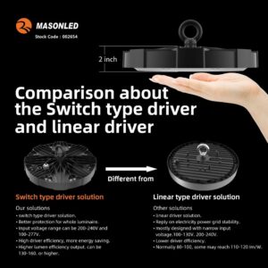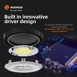 Giải quyết mọi điểm khó khăn này, High Bay Light mới của MasonLED có **trình điều khiển chế độ chuyển đổi tích hợp**—một công cụ thay đổi cuộc chơi giữ lại tất cả các ưu điểm của trình điều khiển chế độ chuyển đổi độc lập trong khi loại bỏ phần cứng bên ngoài. Không giống như các hệ thống DOB tuyến tính, giải pháp của chúng tôi gắn toàn bộ linh kiện điện tử hiệu suất cao trực tiếp lên bảng đèn, không ảnh hưởng đến chất lượng hoặc chức năng.