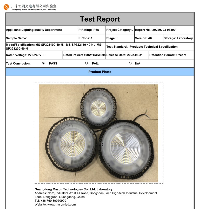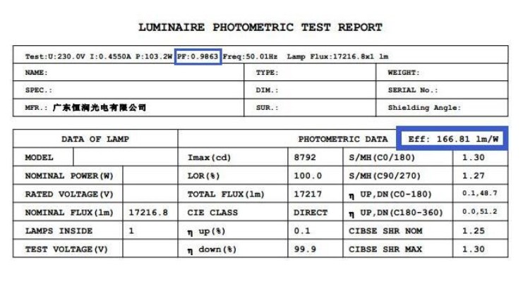 Báo cáo thử nghiệm thực tế: Đèn Masonled Rudder Highbay có thể đạt được hơn 160lm / W, tỷ lệ PF vẫn hơn 0,95, điều đó rất ấn tượng, hoàn toàn khác biệt với trình điều khiển DOB.